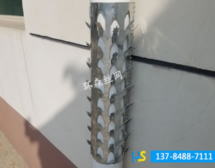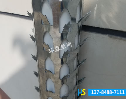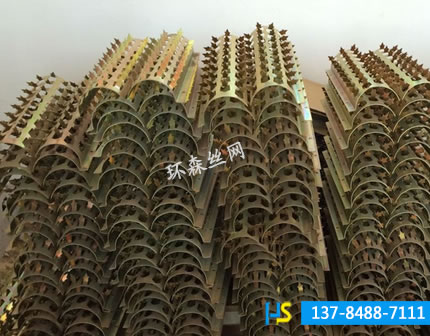 防爬刺的刺型為皇冠型,樣式美觀,刺密度大,采用沖壓成型,每顆刺型都要純手工彎扭,更加增加了刺的硬度和韌性。